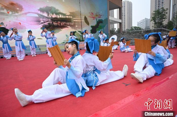 資料圖:學(xué)生們正在進(jìn)行《弟子規(guī)》經(jīng)典誦讀表演?!£惓?攝
