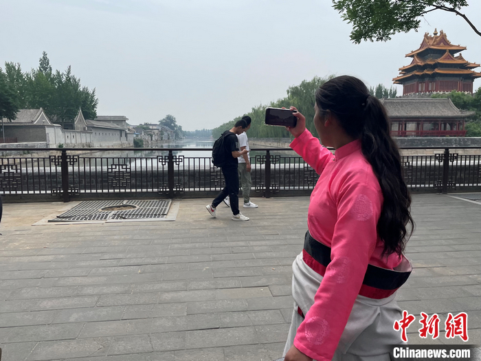 鬧增拉毛第一次通過手機(jī)鏡頭拍攝故宮外圍的場(chǎng)景。袁秀月 攝