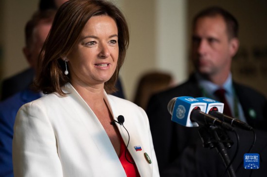 6月6日,在位于紐約的聯(lián)合國總部,斯洛文尼亞外長塔尼婭·法永在斯洛文尼亞當(dāng)選聯(lián)合國安理會(huì)非常任理事國后在記者見面會(huì)上講話。新華社發(fā)(聯(lián)合國供圖/洛伊·費(fèi)利佩攝)