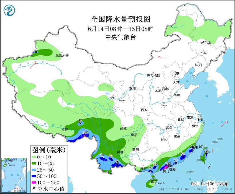中新網(wǎng)6月14日電 據(jù)中央氣象臺網(wǎng)站消息,中央氣象臺預報,未來三天,我國整體的天氣形勢為北晴南雨,北方大部地區(qū)將陸續(xù)感受到炎炎夏日的威力,西安、鄭州、石家莊今明兩天最高氣溫將在37-39℃;南方降雨主要集中在華南沿海地區(qū),雨量普遍有大到暴雨。華南這種臨近端午節(jié)的大范圍強降雨又稱為龍舟水。氣象專家提醒,未來三天進入華南“龍舟水”集中期,需注意持續(xù)性強降雨可能引發(fā)的次生地質災害。