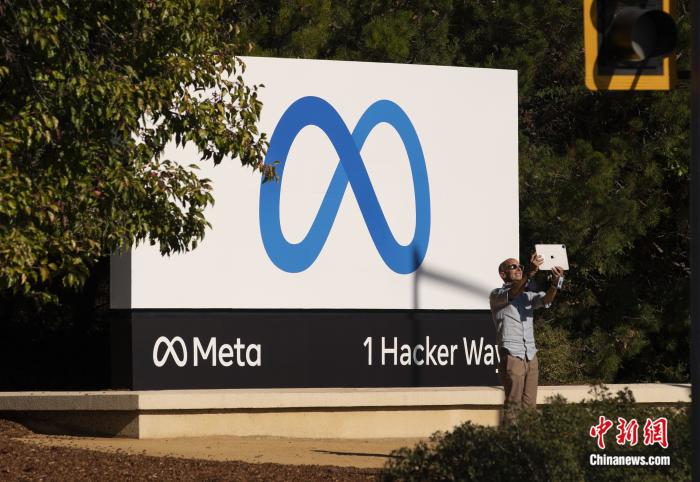 美國社交網(wǎng)絡(luò)巨頭Facebook公司(臉書)更名為Meta(元宇宙),位于美國加利福尼亞州門洛帕克的元宇宙公司總部的新標(biāo)識吸引市民拍照留念。劉關(guān)關(guān) 攝