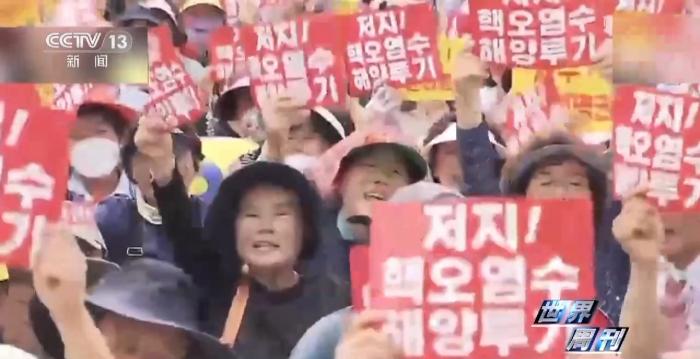 同一天,在日本駐濟州總領(lǐng)事館前,來自濟州自治道漁業(yè)和農(nóng)業(yè)團體約2000多人集會抗議,譴責日本將福島核電站核污染水排放入海。