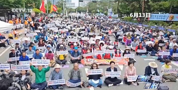 來自國際社會的反對之聲更加強烈。 6月13日,韓國漁民在首爾集會,反對日本政府的核污染水排海計劃。