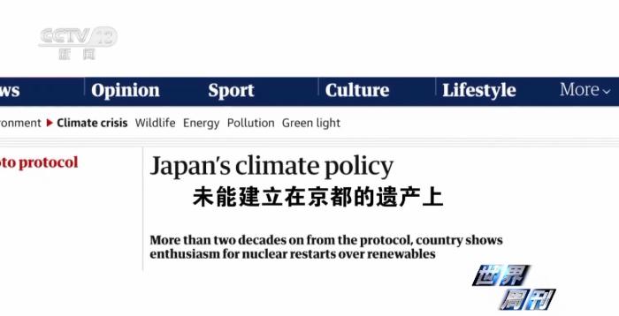 《衛(wèi)報》評論稱,在《京都議定書》簽署25年后,日本的氣候政策 “未能建立在京都的遺產(chǎn)上”。(央視新聞客戶端)