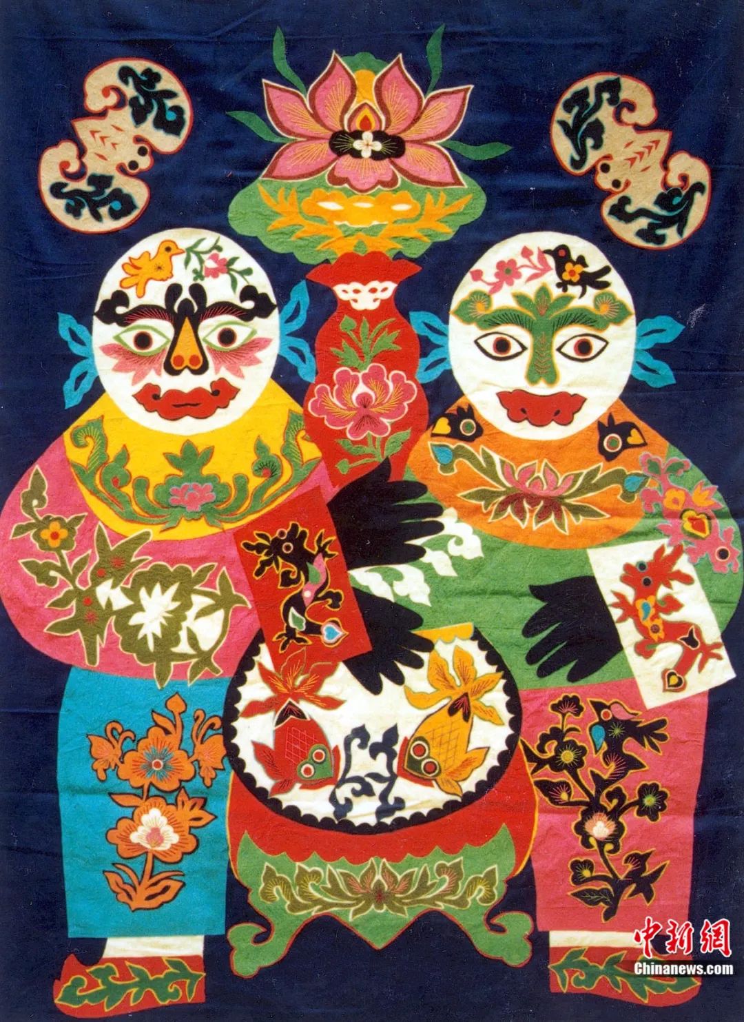 布貼畫作品“和合二仙”。鐘欣 攝