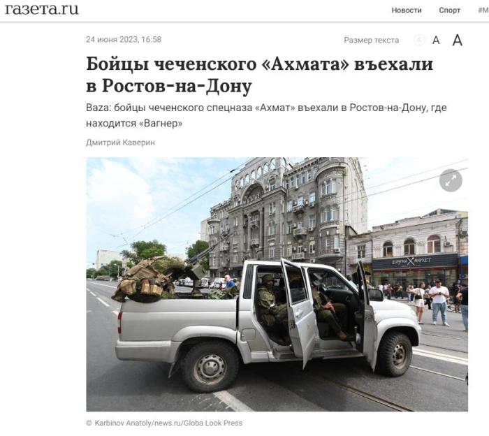 中新網6月24日電 據俄羅斯《報紙報》援引社交媒體消息,當地時間24日,俄羅斯車臣“阿赫馬特”特種部隊已進入頓河畔羅斯托夫地區(qū)。當日早間,俄雇傭兵組織“瓦格納”集團進入該地。