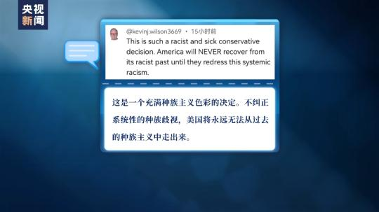 還有不少網(wǎng)友認(rèn)為,最高法院的這一裁定充斥著濃厚的“種族主義”色彩,“不糾正系統(tǒng)性的種族歧視,美國(guó)將永遠(yuǎn)無(wú)法從過(guò)去的種族主義中走出來(lái)。”