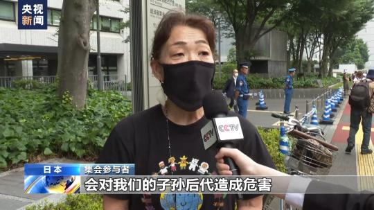 集會參與者:核污染水總有一天會對我們的子孫后代造成危害,我認(rèn)為絕不應(yīng)該做這樣的事情,所以我反對排海。