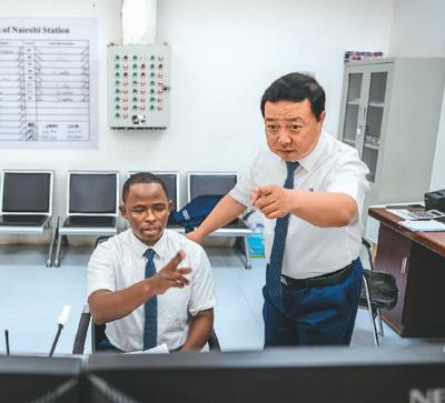 毛鑫是非洲之星鐵路運(yùn)營公司運(yùn)輸部內(nèi)羅畢車站運(yùn)轉(zhuǎn)主任,他與徒弟彼得·恩堅(jiān)加一起制定調(diào)度計(jì)劃、調(diào)控列車運(yùn)轉(zhuǎn)?!拔覀儫o保留地把國內(nèi)的技術(shù)標(biāo)準(zhǔn)帶到肯尼亞,學(xué)員已達(dá)到國內(nèi)車站同等作業(yè)標(biāo)準(zhǔn)?!泵握f,幫助肯尼亞建設(shè)第一條現(xiàn)代化鐵路,是他人生中的亮點(diǎn)。彼得表示,自己從師父身上學(xué)到了許多專業(yè)技術(shù),未來他將把知識傳授給更多人。
