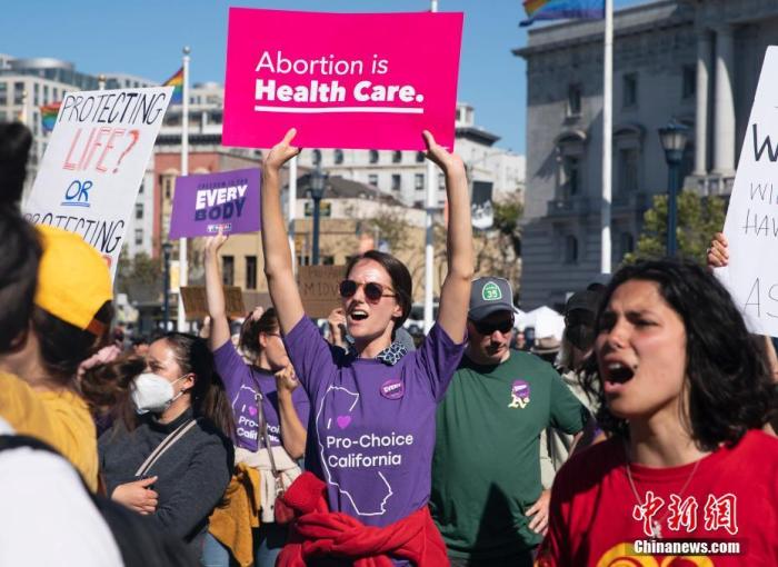 資料圖:當(dāng)?shù)貢r(shí)間2022年6月24日,美國(guó)舊金山民眾聚集在市政廳前,抗議美聯(lián)邦最高法院推翻“羅訴韋德案”。中新社記者 劉關(guān)關(guān) 攝