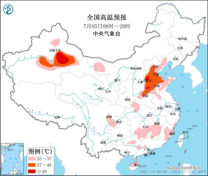 高溫方面,受降雨影響華北大部高溫天氣得到短暫緩解,明天起(5日)京津冀及黃淮等地高溫將再度發(fā)展加強(qiáng),河北大部、北京、天津、山東北部、河南中北部等地日最高氣溫可達(dá)37~39℃,部分地區(qū)超過(guò)40℃。請(qǐng)公眾注意做好防曬降溫措施,盡量減少外出和戶外活動(dòng)時(shí)間,及時(shí)補(bǔ)充水分,警惕高溫引發(fā)的中暑。