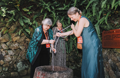 走過(guò)枝繁葉茂的千年柳杉,穿過(guò)青石鋪就的鼓嶺老街,在始建于1914年的萬(wàn)國(guó)公益社,大家圍坐桌前共敘鼓嶺情緣,一幅穿越時(shí)光的友誼畫卷緩緩打開。