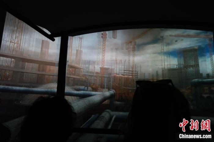 媒體與在華留學(xué)生一同體驗(yàn)“低碳城市”展廳互動(dòng)產(chǎn)品。 唐煒妮 攝