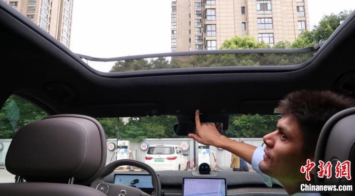 在華留學(xué)生上車體驗(yàn)新能源汽車站內(nèi)“一鍵換電”。 唐煒妮 攝