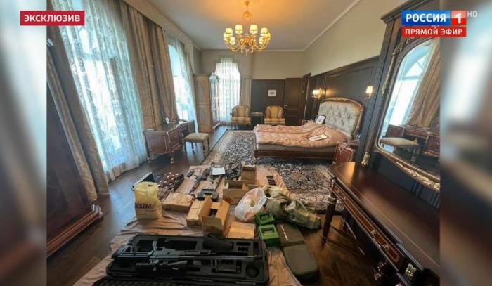 據(jù)報(bào)道,“俄羅斯1”電視頻道在“60分鐘節(jié)目中”展示了普里戈任辦公室和家中的畫面,執(zhí)法人員在那里發(fā)現(xiàn)了現(xiàn)金、假發(fā)、護(hù)照、武器等,房屋的院子里還停放著一架小型直升機(jī)。