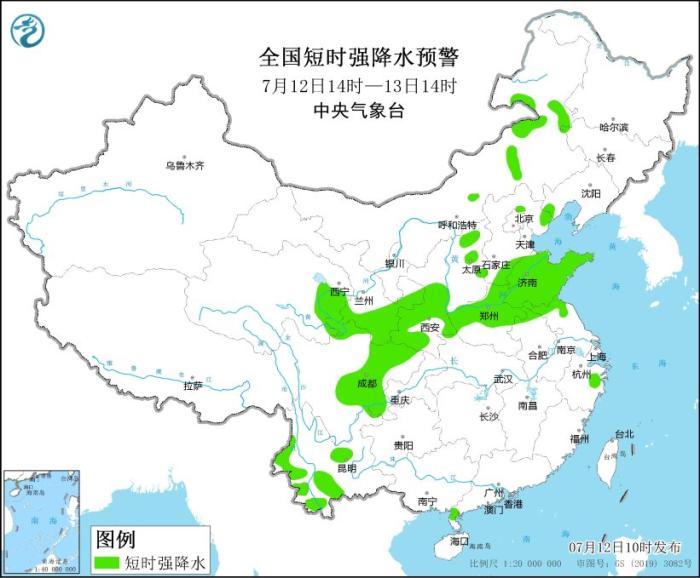 中新網(wǎng)7月12日電 據(jù)中央氣象臺網(wǎng)站消息,中央氣象臺7月12日10時繼續(xù)發(fā)布強對流天氣藍色預(yù)警:預(yù)計7月12日14時至13日14時,內(nèi)蒙古中東部、陜西中部、山東大部、河南東部、安徽北部、江蘇北部、四川盆地中西部等地的部分地區(qū)將有8-10級雷暴大風(fēng)或冰雹天氣;內(nèi)蒙古中東部、青海東部、甘肅東部和南部、陜西中南部、山西中北部、河北南部、山東、河南中北部、安徽北部、江蘇北部、四川盆地西部、云南西南部等地的部分地區(qū)將有短時強降水天氣,小時雨量30-50毫米,局地可達60毫米以上。