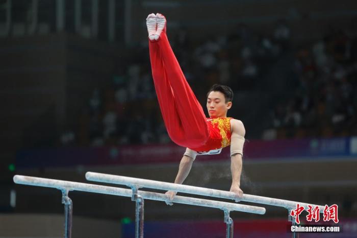 資料圖:第十四屆全運會男子雙杠決賽中,四川隊選手鄒敬園奪冠。中新社記者 蔣啟明 攝