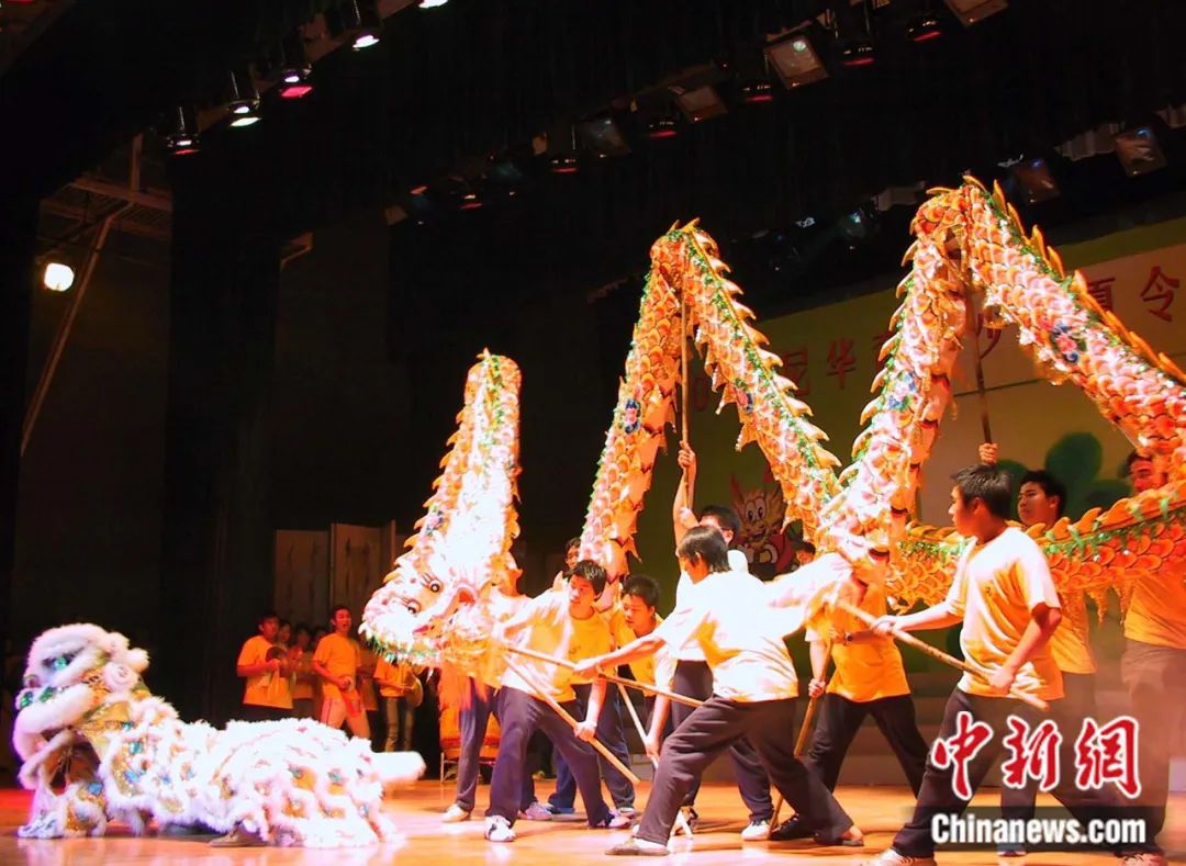 2005年6月,印尼華裔青少年夏令營(yíng)在中國(guó)湖南省舉行。圖為閉營(yíng)儀式上印尼青少年進(jìn)行精彩的舞龍表演。劉雙雙 攝