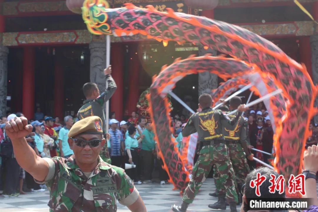 舞龍舞獅作為中國(guó)民間傳統(tǒng)文化,其藝術(shù)形式已成為世界通行的“文化語(yǔ)言”。印尼軍方一些連隊(duì)也喜歡舞龍運(yùn)動(dòng),因?yàn)槲椠埐粌H可培養(yǎng)勇敢和團(tuán)隊(duì)精神,還能讓士兵們步伐靈活、動(dòng)作協(xié)調(diào)一致,同時(shí)又具有很強(qiáng)的娛樂(lè)性。去年10月,印尼龍獅運(yùn)動(dòng)聯(lián)合總會(huì)在日惹舉辦了印尼全國(guó)龍獅大賽,印尼軍方派出多支代表隊(duì)參賽。今年3月,北蘇門答臘省龍獅分會(huì)在棉蘭舉辦國(guó)際舞獅大賽,當(dāng)?shù)剀姺揭才沙鑫椠堦?duì)到場(chǎng)表演。