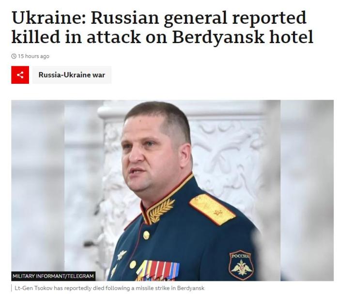 英國廣播公司(BBC)報(bào)道俄羅斯南部軍區(qū)副司令措科夫遇襲身亡。圖片來源:BBC報(bào)道截圖