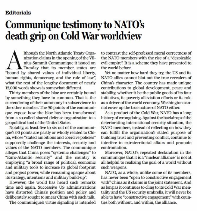 原標題:Communique testimony to NATO’s death grip on Cold War worldview