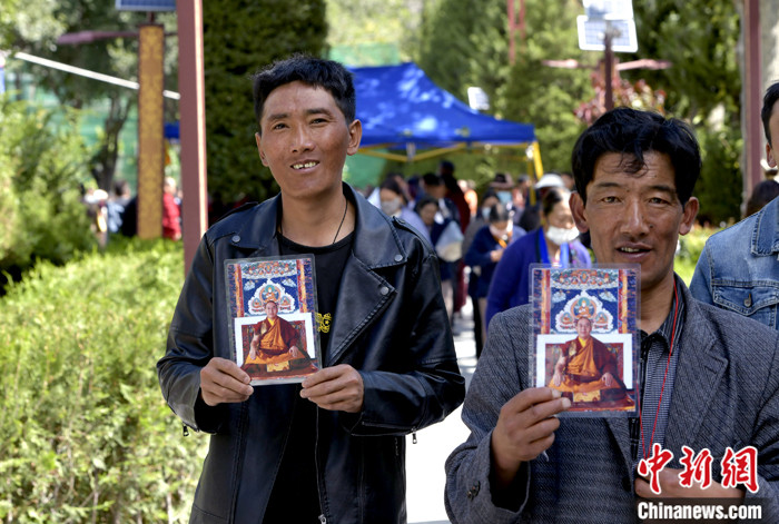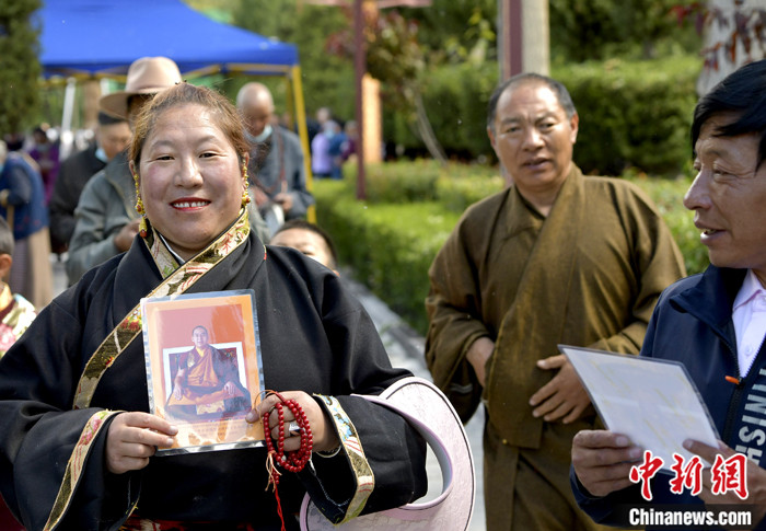 7月17日,信眾展示班禪法相照片。 中新社記者 李林 攝