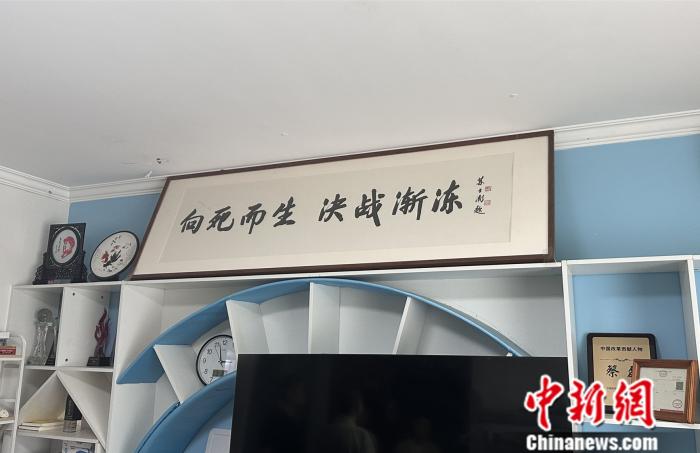 蔡磊的辦公室內(nèi)有一塊“向死而生 決戰(zhàn)漸凍”的牌匾 記者 吳家駒 攝
