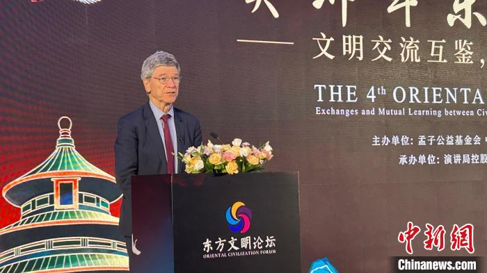 2023年7月23日,哈佛大學(xué)國際研究中心主任、哥倫比亞大學(xué)經(jīng)濟學(xué)教授杰弗里·薩克斯在第四屆東方文明論壇上作主題演講。 中新社記者 鄧力垚 攝