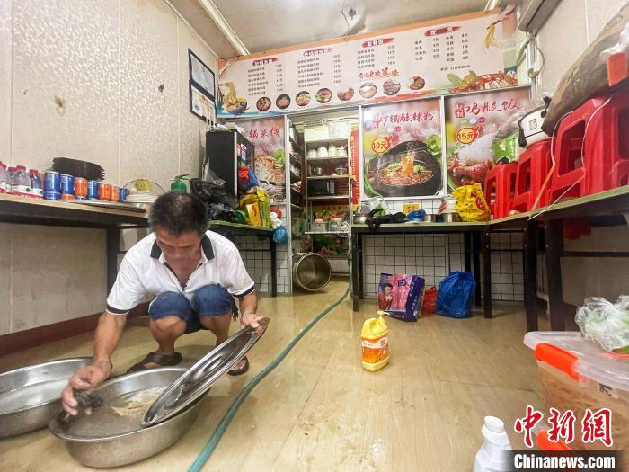 “店內(nèi)的淤泥很多,都有十幾厘米高,早上7點(diǎn)左右一直整理到現(xiàn)在(18時),全部整理完還要再進(jìn)行全面消毒?!瘪T先生說。