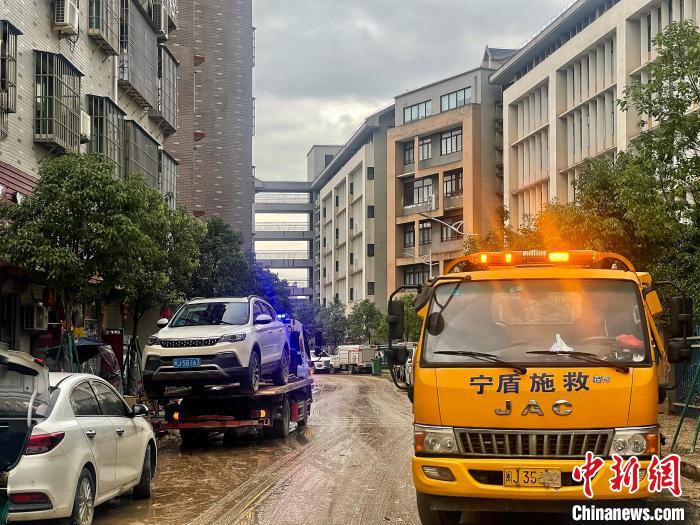 沿著中心街道往里走,越往里,積水退去后的殘留淤泥越多。街道兩側(cè),不時可看見堆放著不少被積水浸泡過后、無法使用的家具、生活用品以及貨物等,救援車將一部部受損車輛拖離現(xiàn)場。
