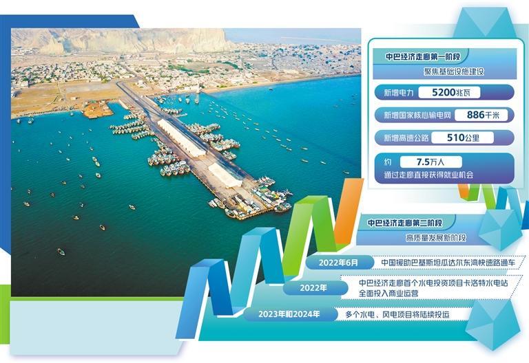 當(dāng)前正處于中巴經(jīng)濟(jì)走廊建設(shè)的第二階段,這也是至關(guān)重要的高質(zhì)量發(fā)展新階段。中巴雙方在走廊框架下,進(jìn)一步加強(qiáng)巴國(guó)工業(yè)化進(jìn)程、人力資源培訓(xùn)和產(chǎn)業(yè)園區(qū)建設(shè),在扶貧、醫(yī)療、農(nóng)業(yè)以及互聯(lián)網(wǎng)等眾多與民生息息相關(guān)的領(lǐng)域持續(xù)深化合作,力求創(chuàng)造更多就業(yè)機(jī)會(huì),不斷推動(dòng)巴基斯坦的經(jīng)濟(jì)和社會(huì)現(xiàn)代化發(fā)展,造福當(dāng)?shù)孛癖姟?022年6月,中國(guó)援助巴基斯坦瓜達(dá)爾東灣快速路通車,打通了瓜達(dá)爾港和卡拉奇之間的交通運(yùn)輸通道。同年,中巴經(jīng)濟(jì)走廊首個(gè)水電投資項(xiàng)目——卡洛特水電站全面投入商業(yè)運(yùn)營(yíng),每年將向巴基斯坦提供32億千瓦時(shí)廉價(jià)清潔電能,滿足當(dāng)?shù)?00萬(wàn)人用電需求,每年可節(jié)約標(biāo)準(zhǔn)煤約140萬(wàn)噸,減少二氧化碳排放350萬(wàn)噸。今明兩年,走廊框架下的多個(gè)水電、風(fēng)電項(xiàng)目將陸續(xù)投運(yùn),未來巴基斯坦在清潔能源領(lǐng)域大有可為。