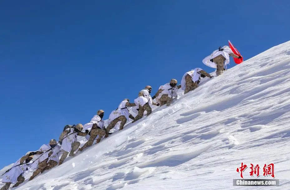 海拔5200米,西藏阿里軍分區(qū)官兵邊防線上踏雪巡邏。劉曉東 攝