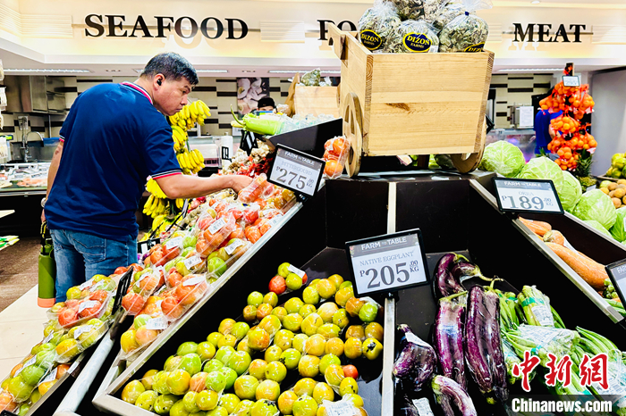 當(dāng)?shù)貢r間8月4日,菲律賓大馬尼拉地區(qū)馬卡蒂市,市民在超市選購水果。 中新社記者 張興龍 攝