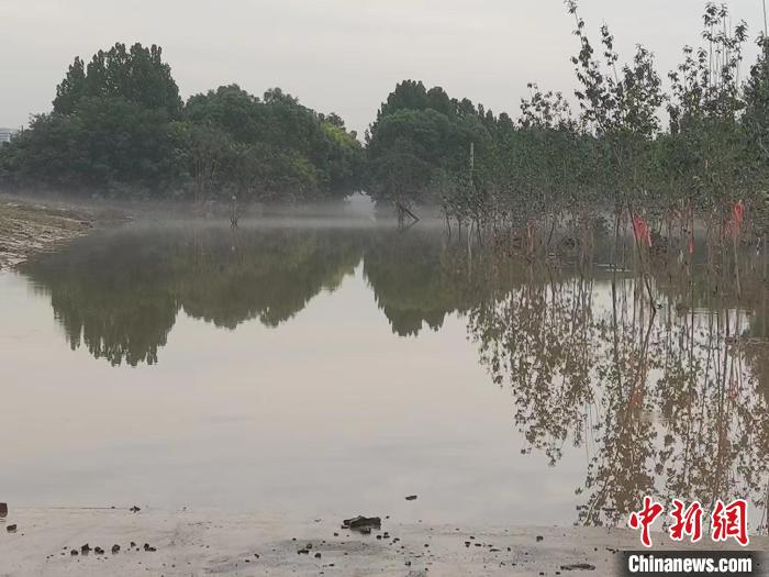8月5日,前往中圖網倉儲中心的一條道路依然有大量積水,行人無法通行。 中新社記者 陳林 攝