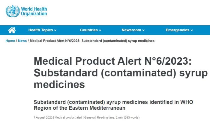 自2022年10月至今,世衛(wèi)組織曾多次就其他受污染液體劑量藥品發(fā)布警報(bào)。