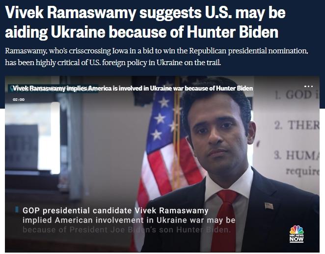 “支付給亨特·拜登的款項(xiàng)是否存在腐敗行為?絕對(duì)有。這和我們對(duì)烏克蘭的態(tài)度有什么關(guān)系嗎?我認(rèn)為這直接影響美國對(duì)烏立場(chǎng)。”拉馬斯瓦米說道。