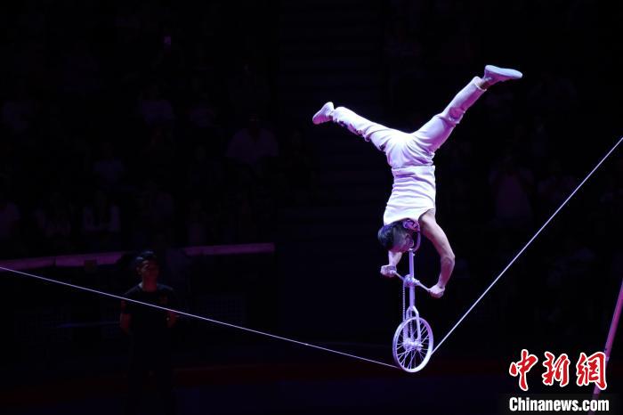 當(dāng)?shù)貢r(shí)間8月9日,哈薩克斯坦阿斯塔納,“亞洲回聲”國際馬戲藝術(shù)節(jié)啟幕。圖為哈薩克斯坦表演者。 中新社記者 張碩 攝