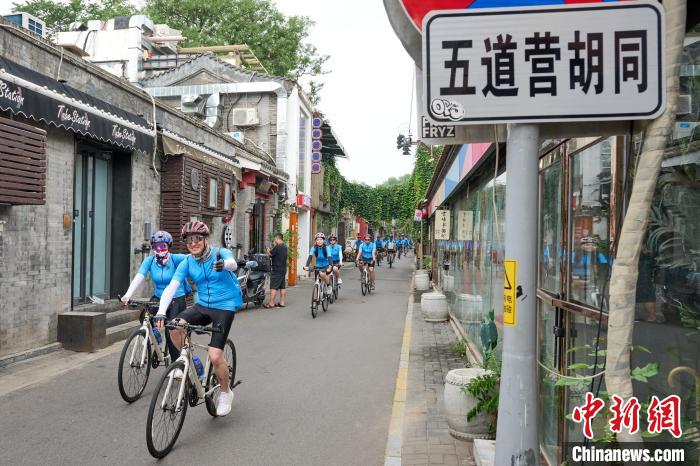 8月8日,臺胞青年在五道營胡同騎行。(主辦方供圖)