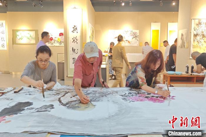 8月9日,張明琴(右一)在福建泉州與藝術(shù)家們共繪國畫作品?!枪跇?攝