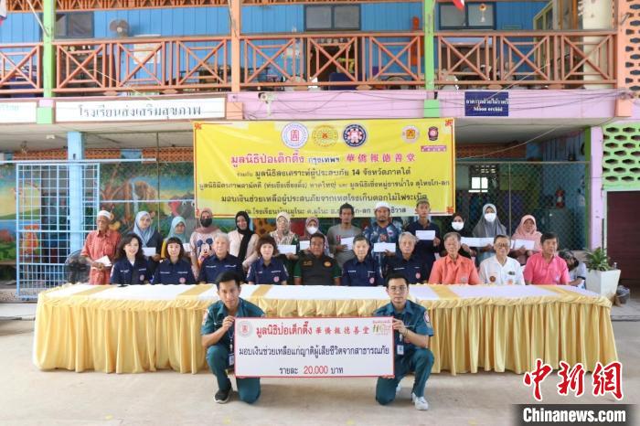 8月9日,華僑報德善堂和泰南十四府聯(lián)合救災(zāi)機構(gòu)慰問救濟陶公府爆炸案受害者。中新社發(fā) 受訪者供圖