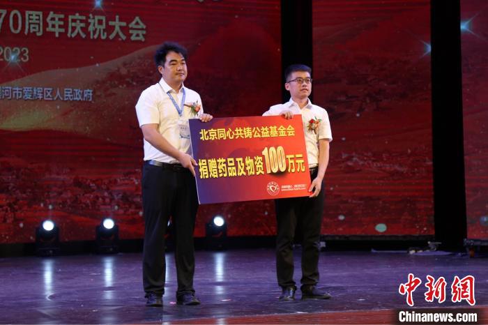 此次健康公益活動由北京同心共鑄公益基金會主辦?;顒诱陳圯x區(qū)新生鄂倫春族鄉(xiāng)鄂倫春族同胞下山定居70周年,受愛輝區(qū)委區(qū)政府邀請,北京同心共鑄公益基金會攜醫(yī)務(wù)志愿者、社會愛心人士參加了當(dāng)?shù)嘏e辦的相關(guān)慶?;顒?。其間,基金會向愛輝區(qū)捐贈價值100萬元人民幣的藥品及物資,基金會秘書長殷延志獲評為助力愛輝區(qū)鄂倫春族發(fā)展“貢獻(xiàn)杰出人物”。