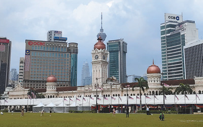 馬來西亞吉隆坡獨(dú)立廣場(chǎng)上,人們駐足拍照。