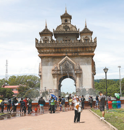 老撾首都萬象市中心的凱旋門吸引眾多游客參觀。