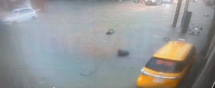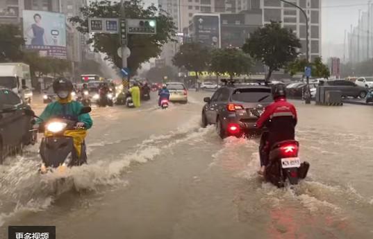 圖為臺灣高雄市路面淹水。圖片來源:臺灣“中時新聞網(wǎng)”視頻截圖