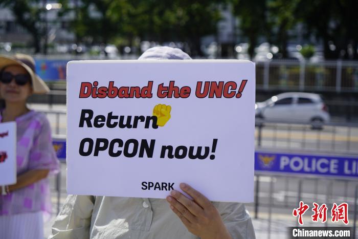 21日上午,韓國(guó)民間團(tuán)體“和平統(tǒng)一開(kāi)創(chuàng)者”在韓國(guó)總統(tǒng)府前的空地集會(huì)。有市民手舉“中斷韓美軍事演習(xí)”“立即收回戰(zhàn)時(shí)作戰(zhàn)指揮權(quán)”“反對(duì)北約成員國(guó)軍事介入朝鮮半島”等標(biāo)語(yǔ),呼吁韓美兩國(guó)停止軍演,要求廢除美國(guó)對(duì)韓國(guó)提供的“延伸威懾”。