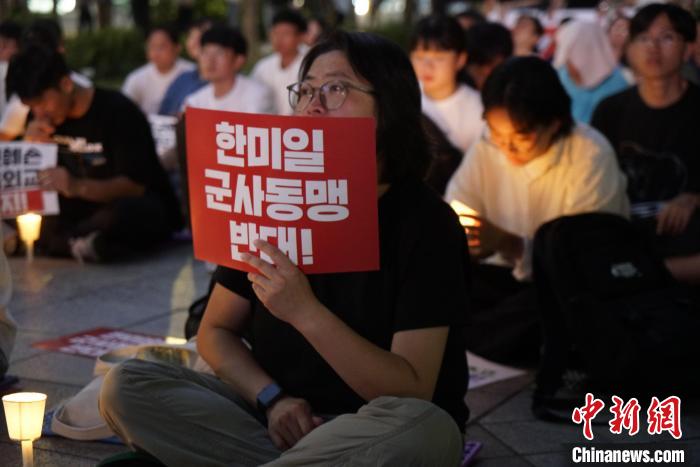 8月18日晚,韓國(guó)民間團(tuán)體“停戰(zhàn)70年朝鮮半島和平行動(dòng)”在首爾市中心舉行燭光集會(huì),抗議韓美即將舉行的大規(guī)模聯(lián)合軍事演習(xí)?!≈行律缬浾?劉旭 攝