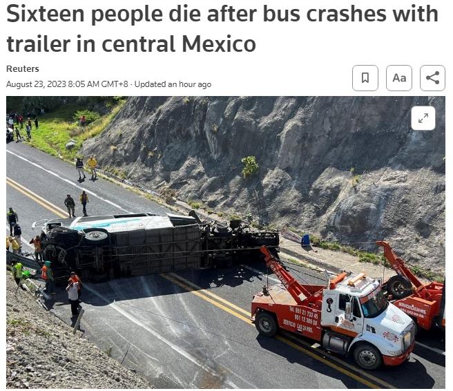 據(jù)報道,瓦哈卡州檢察官辦公室在聲明中表示,這輛大巴車在瓦哈卡州和普埃布拉州交界處附近的高速公路上與一輛拖車相撞。