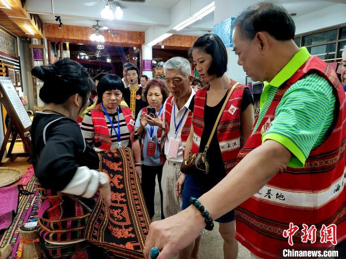 臺(tái)北市商業(yè)總會(huì)一行在海南檳榔谷景區(qū)觀看黎錦作品?!⊥鯐员?攝