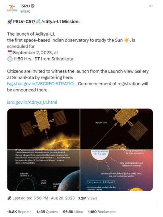 報(bào)道稱,作為印度首個(gè)專門(mén)研究太陽(yáng)的任務(wù),“太陽(yáng)神-L1號(hào)”(Aditya-L1)將成為印度空間研究組織新的里程碑。