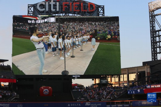 9月1日,在美國紐約大都會棒球隊主場花旗球場,兒童合唱團(tuán)在“中華之夜”暨“你好!中國”旅游推廣品牌發(fā)布活動結(jié)束后表演。